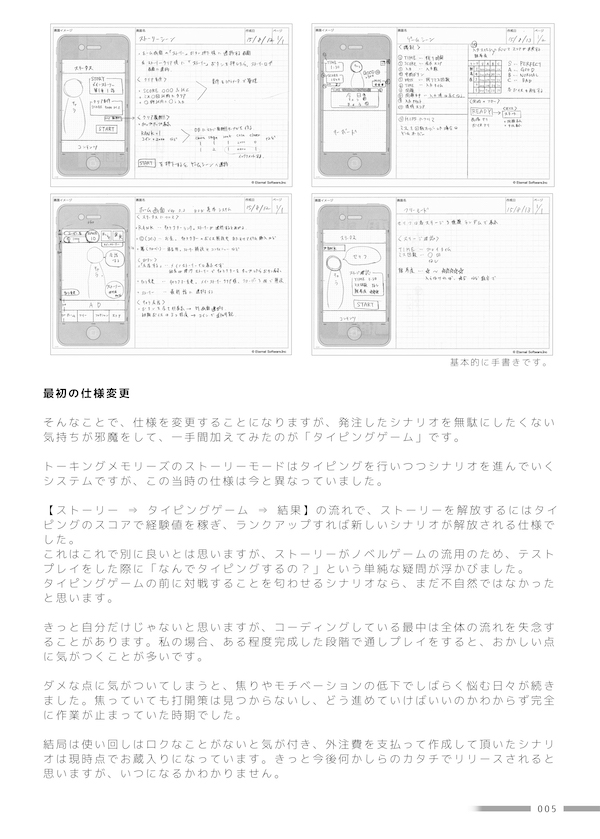 仕様変更に至った経緯や、キャラクターのラフ画などトーキングメモリーズのファンはもちろん、アプリ開発に興味がある方におすすめです。