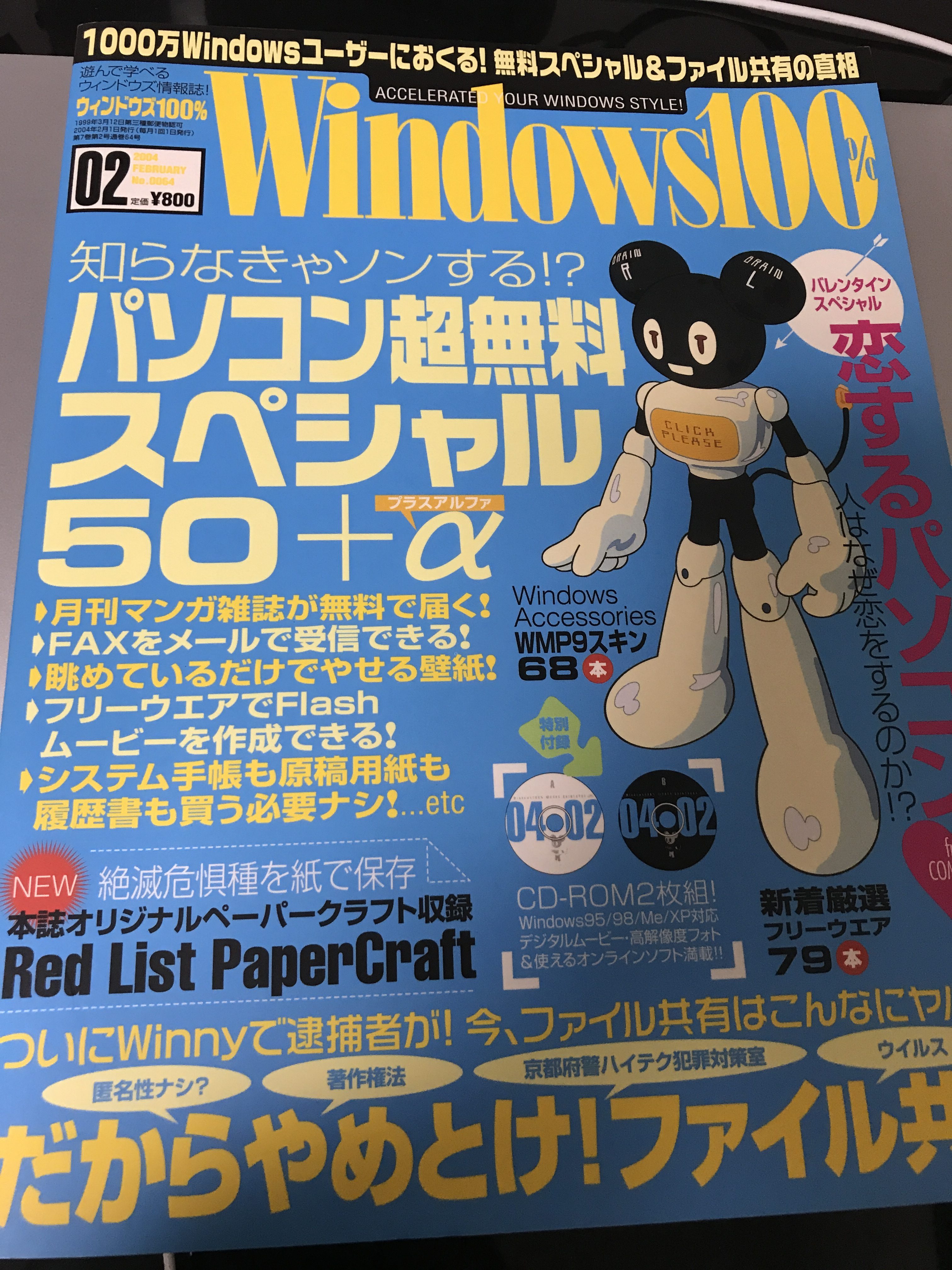 Windows100%といえば雑誌にDVD-ROMが付属して、フリーゲームはもちろんアダルト関連のコンテンツも楽しめた、いわばエロ本を買う勇気がない人が堂々と買える雑誌でした(違う)